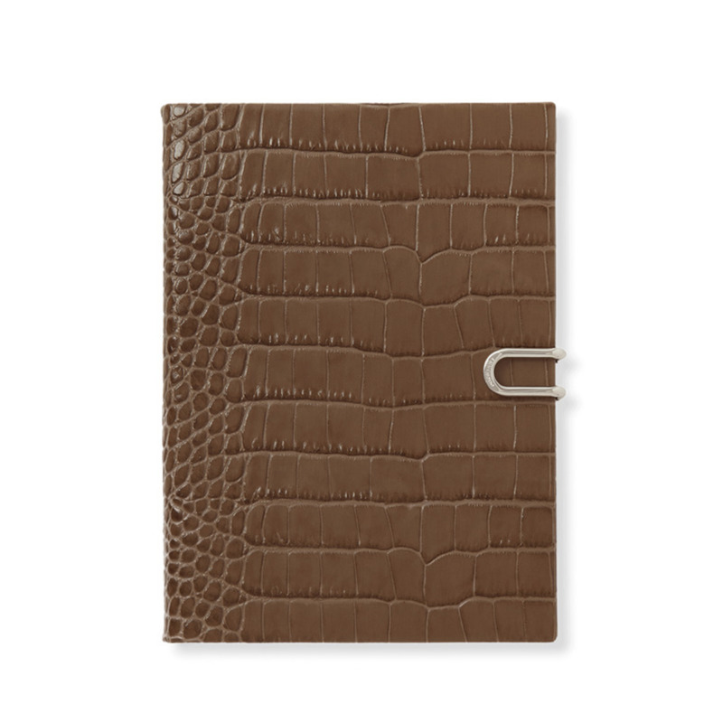 SMYTHSON SOHO PREMIUM ΔΕΡΜΑΤΙΝΟ ΣΗΜΕΙΩΜΑΤΑΡΙΟ MID-SIZE A5 ( 14 X 19 ) ΜΕ ΚΛΙΠ MARA ΚΑΦΕ