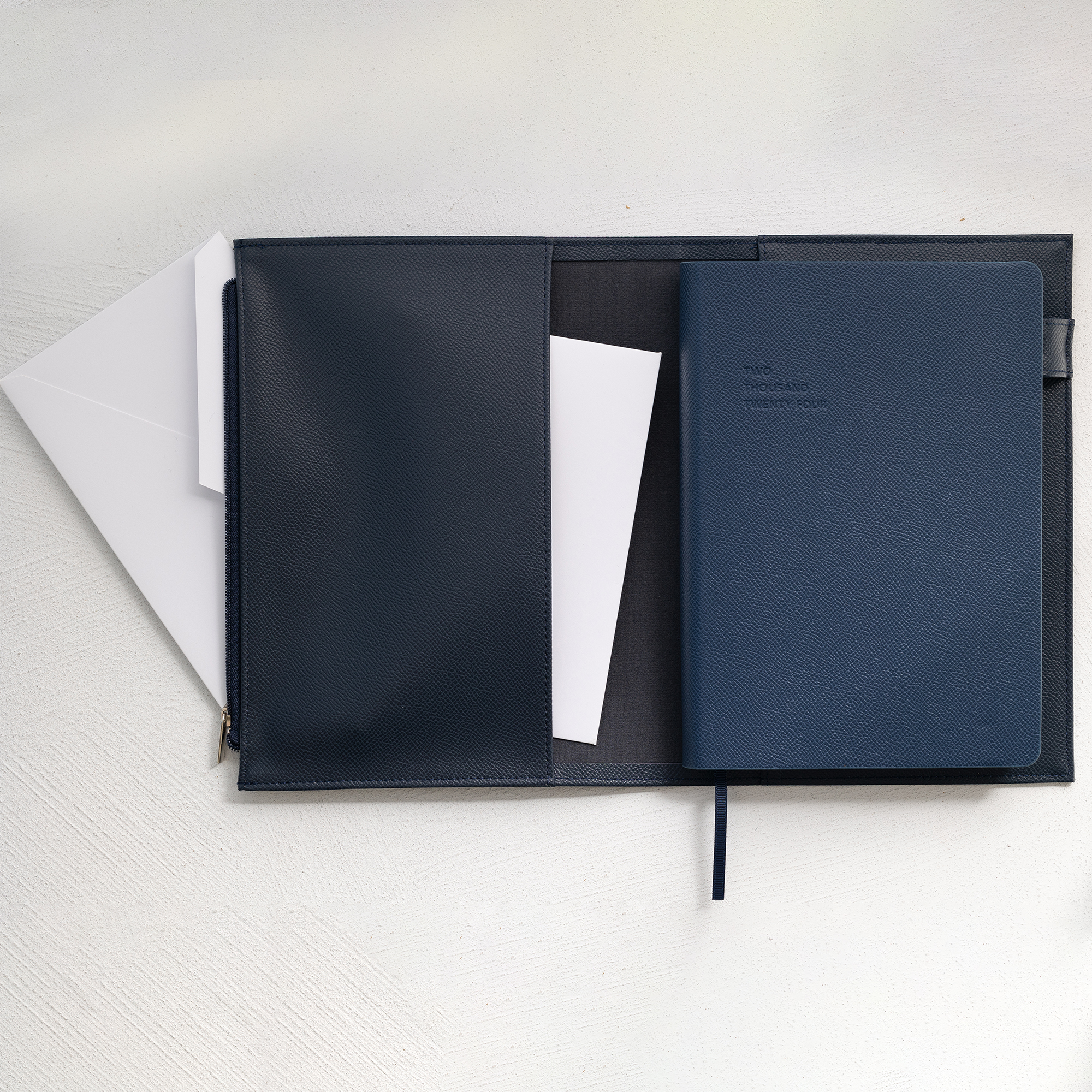 Κάλλυμα ημερολογίου και σημειωματαρίου από την εταιρεία TYPE CENTER σε μπλε χρώμα. Το κάλλυμα διάστασης Α5 είναι κατασκευασμένο από μαλακό οικολογικό δέρμα.