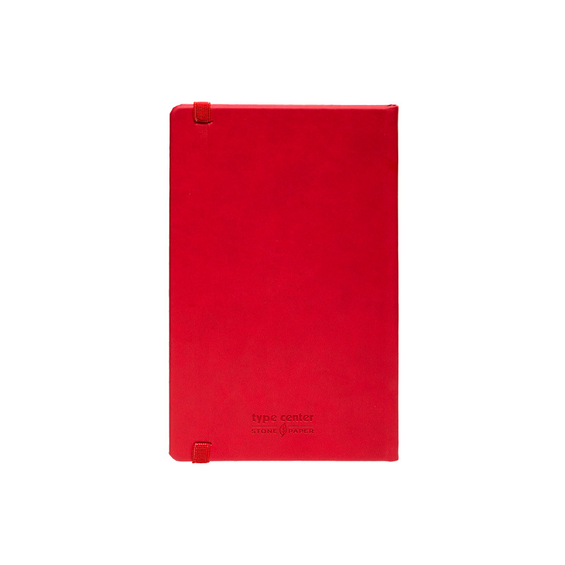 Σημειωματάριο A5 από την εταιρεία Type Center με σκληρό εξώφυλλο σε κόκκινο χρώμα, κατασκευασμένο από υψηλής ποιότητας, βιώσιμο και ανακυκλώσιμο πέτρινο χαρτί. χωρίς λευκαντικά ή οξέα ή την ανάγκη κοπής δέντρων.