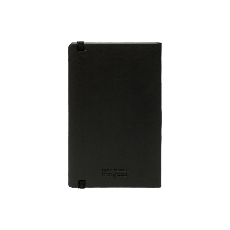 Σημειωματάριο A5 από την εταιρεία Type Center με σκληρό εξώφυλλο σε μαύρο χρώμα, κατασκευασμένο από υψηλής ποιότητας, βιώσιμο και ανακυκλώσιμο πέτρινο χαρτί. χωρίς λευκαντικά ή οξέα ή την ανάγκη κοπής δέντρων.