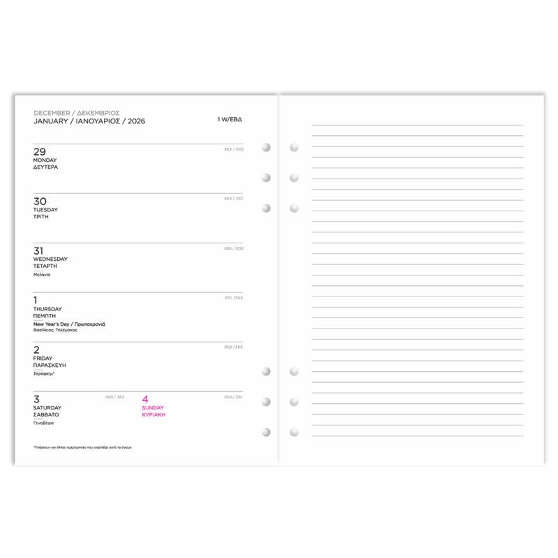 • Εσωτερικό εβδομαδιαίο ημερολόγιο για άψογη οργάνωση.