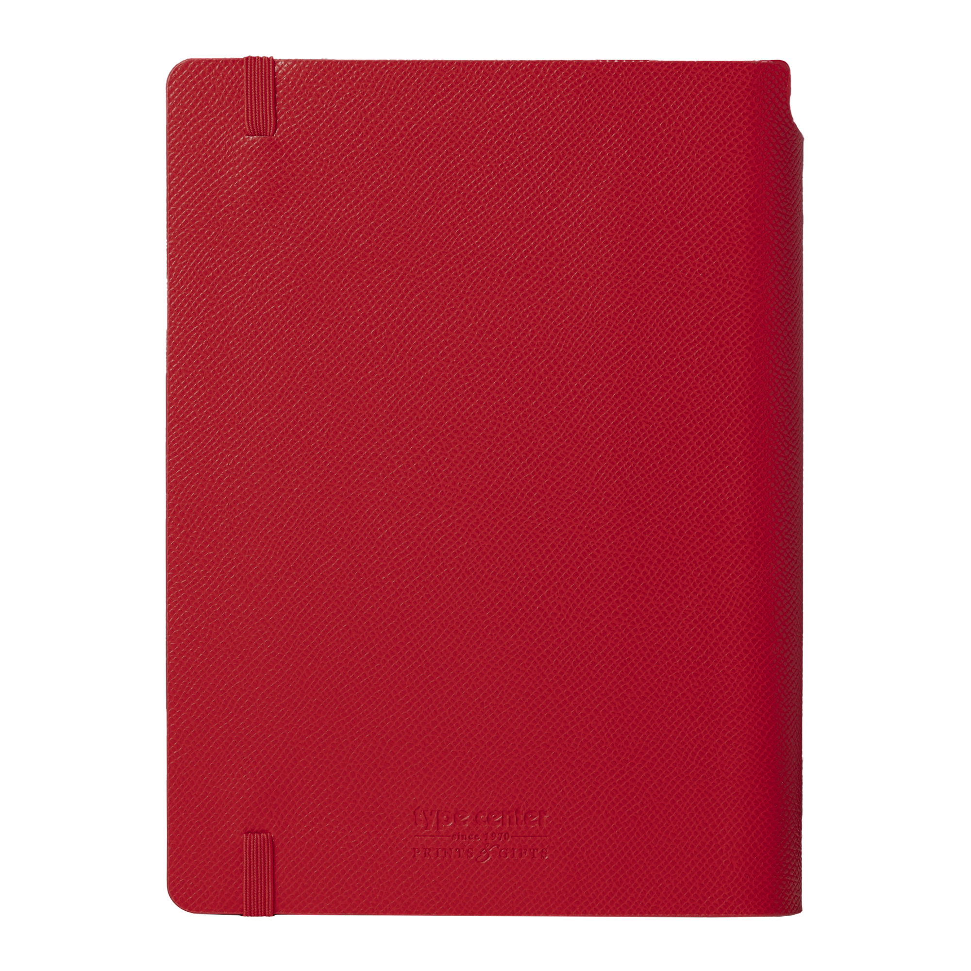 Σημειωματάριο με θέση στην ράχη για στυλό από την Type Center σε κόκκινο χρώμα. Αυτό το σημειωματάριο είναι χειροποίητο κατασκευασμένο από υψηλής ποιότητας οικολογικό δέρμα και είναι ιδανικό για να καταγράφετε τις καθημερινές σας σκέψεις, να διατηρείτε τις λίστες υποχρεώσεων σας οργανωμένες και να σημειώνετε τις προσωπικές σας σημειώσεις. Περιλαμβάνει μεταξωτό σελιδοδείκτη και χρωματιστό σόκορο στο ίδιο χρώμα και εύκαμπτη βιβλιοδεσία. Επιπλέον χαρακτηριστικά :