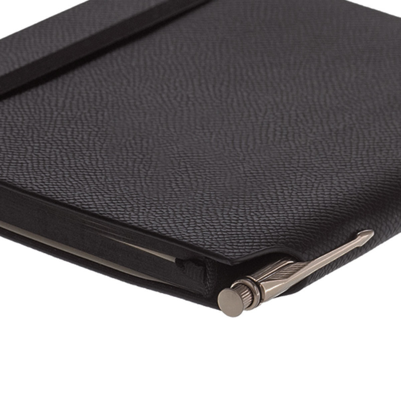 Σημειωματάριο με θέση στην ράχη για στυλό από την Type Center σε διαχρονικό μαύρο χρώμα. Αυτό το σημειωματάριο είναι χειροποίητο κατασκευασμένο από υψηλής ποιότητας οικολογικό δέρμα και είναι ιδανικό για να καταγράφετε τις καθημερινές σας σκέψεις, να διατηρείτε τις λίστες υποχρεώσεων σας οργανωμένες και να σημειώνετε τις προσωπικές σας σημειώσεις. Περιλαμβάνει μεταξωτό σελιδοδείκτη και χρωματιστό σόκορο στο ίδιο χρώμα και εύκαμπτη βιβλιοδεσία. Επιπλέον χαρακτηριστικά :