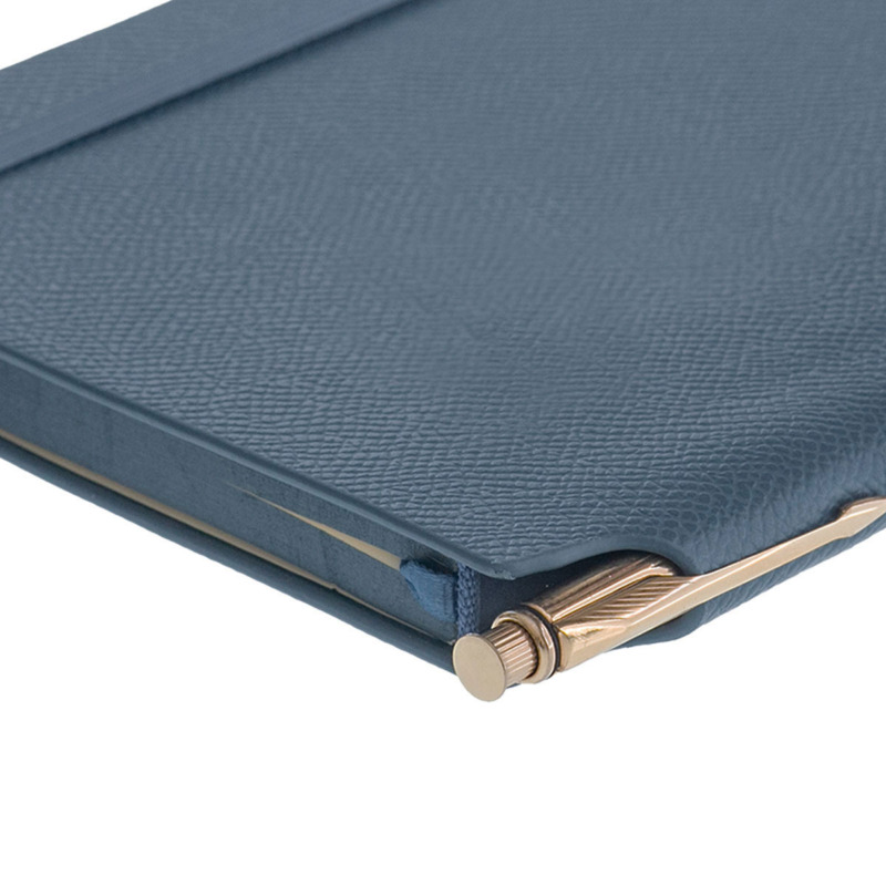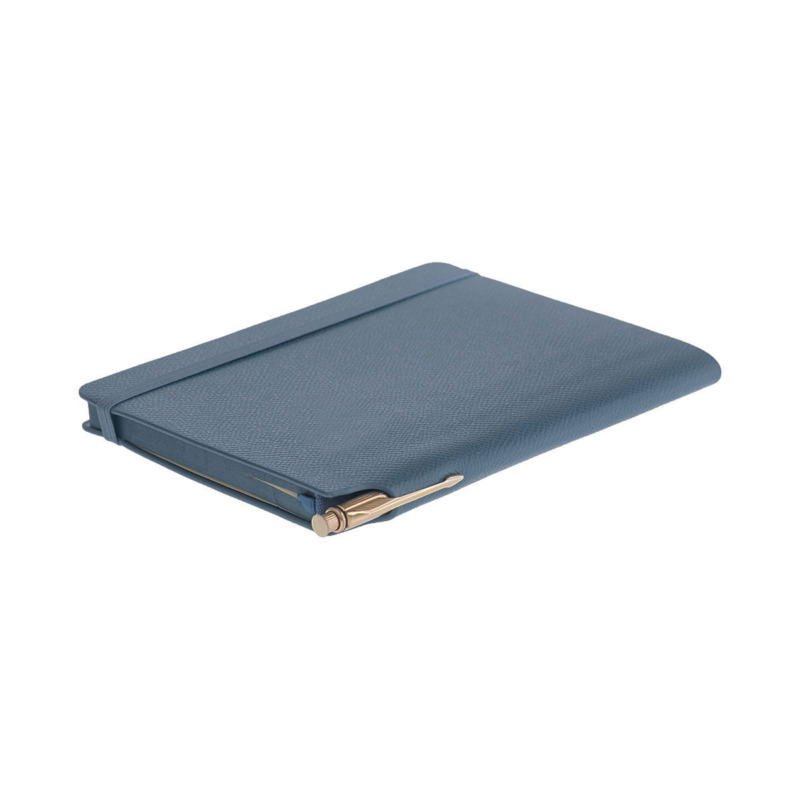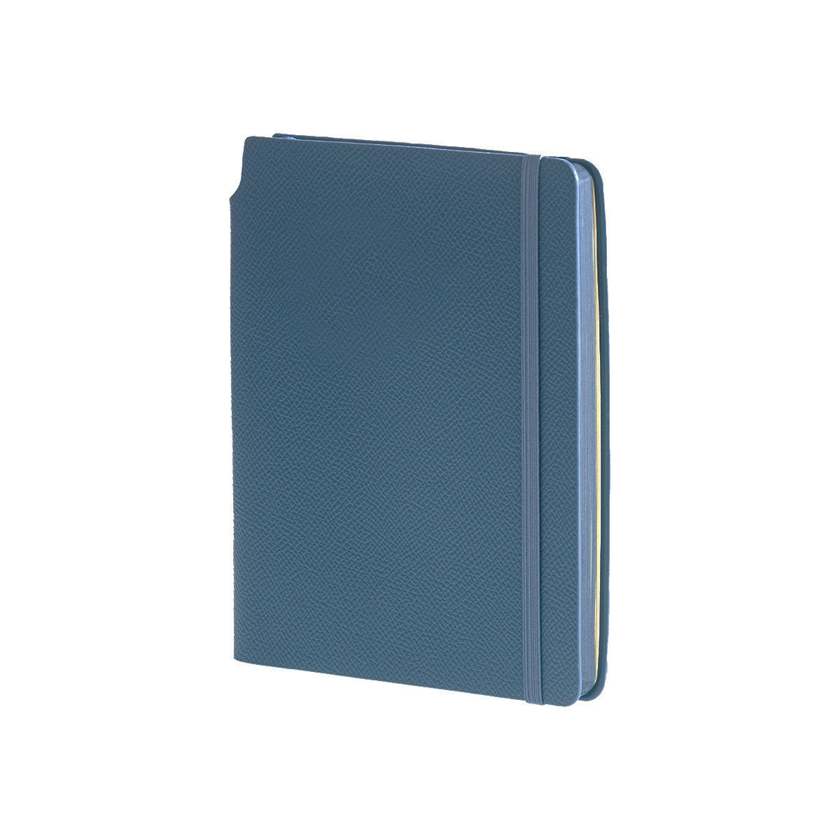 Σημειωματάριο με θέση στην ράχη για στυλό από την Type Center σε μπλε ανοιχτό χρώμα. Αυτό το σημειωματάριο είναι χειροποίητο κατασκευασμένο από υψηλής ποιότητας οικολογικό δέρμα και είναι ιδανικό για να καταγράφετε τις καθημερινές σας σκέψεις, να διατηρείτε τις λίστες υποχρεώσεων σας οργανωμένες και να σημειώνετε τις προσωπικές σας σημειώσεις. Περιλαμβάνει μεταξωτό σελιδοδείκτη και χρωματιστό σόκορο στο ίδιο χρώμα και εύκαμπτη βιβλιοδεσία. Επιπλέον χαρακτηριστικά :
