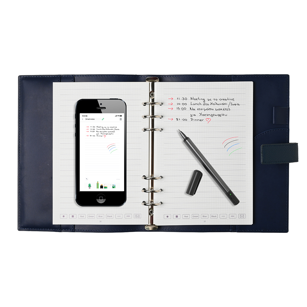 Το Hello Smart Pen μεταφέρει άμεσα στο κινητό ή τον υπολογιστή σου ό,τι γράφεις στο σημειωματάριο.. Αποθήκευσε, οργάνωσε και μοιράσου τις σημειώσεις σου με ευκολία. Επαναχρησιμοποιούμενο & οικολογικό: Οι σελίδες καθαρίζονται με ένα υγρό πανάκι, ώστε να τις χρησιμοποιείς ξανά, εξοικονομώντας χαρτί και προστατεύοντας το περιβάλλον.