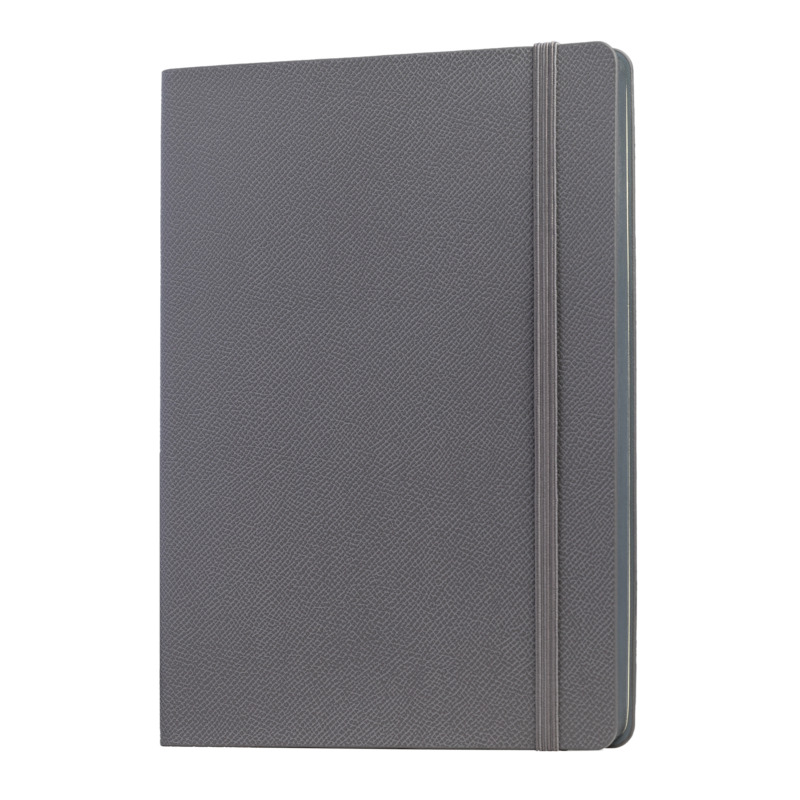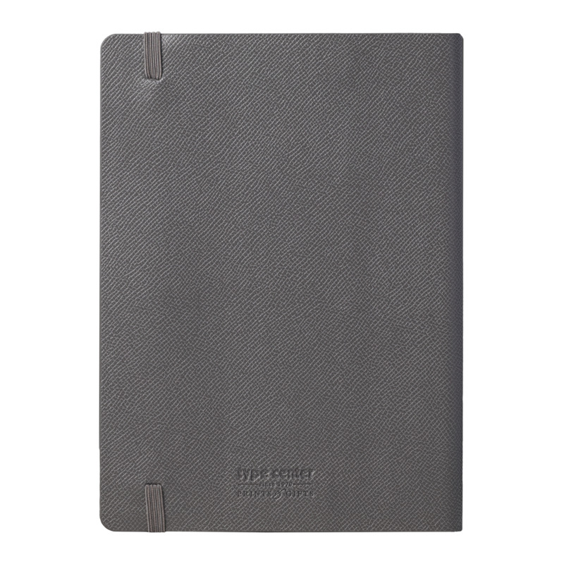 Σημειωματάριο από την Type Center σε γκρι χρώμα. Αυτό το σημειωματάριο είναι χειροποίητο κατασκευασμένο από υψηλής ποιότητας οικολογικό δέρμα και είναι ιδανικό για να καταγράφετε τις καθημερινές σας σκέψεις, να διατηρείτε τις λίστες υποχρεώσεων σας οργανωμένες και να σημειώνετε τις προσωπικές σας σημειώσεις. Περιλαμβάνει μεταξωτό σελιδοδείκτη και χρωματιστό σόκορο στο ίδιο χρώμα και εύκαμπτη βιβλιοδεσία. Επιπλέον χαρακτηριστικά :