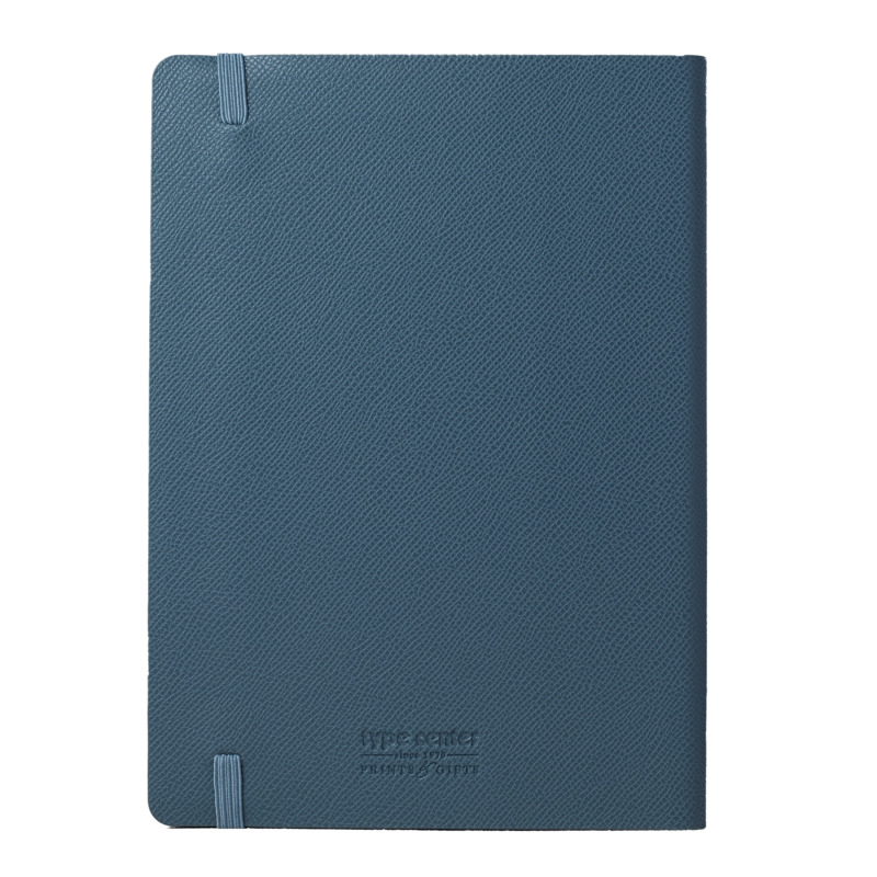 Σημειωματάριο από την Type Center σε μπλε ανοιχτό χρώμα. Αυτό το σημειωματάριο είναι χειροποίητο κατασκευασμένο από υψηλής ποιότητας οικολογικό δέρμα και είναι ιδανικό για να καταγράφετε τις καθημερινές σας σκέψεις, να διατηρείτε τις λίστες υποχρεώσεων σας οργανωμένες και να σημειώνετε τις προσωπικές σας σημειώσεις. Περιλαμβάνει μεταξωτό σελιδοδείκτη και χρωματιστό σόκορο στο ίδιο χρώμα και εύκαμπτη βιβλιοδεσία. Επιπλέον χαρακτηριστικά :