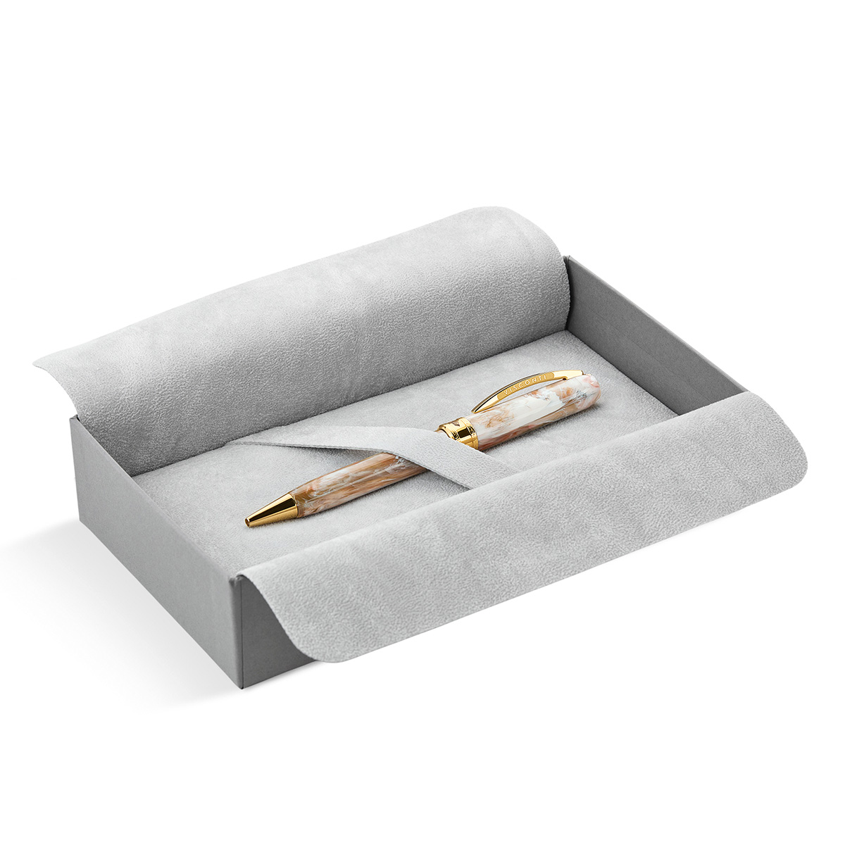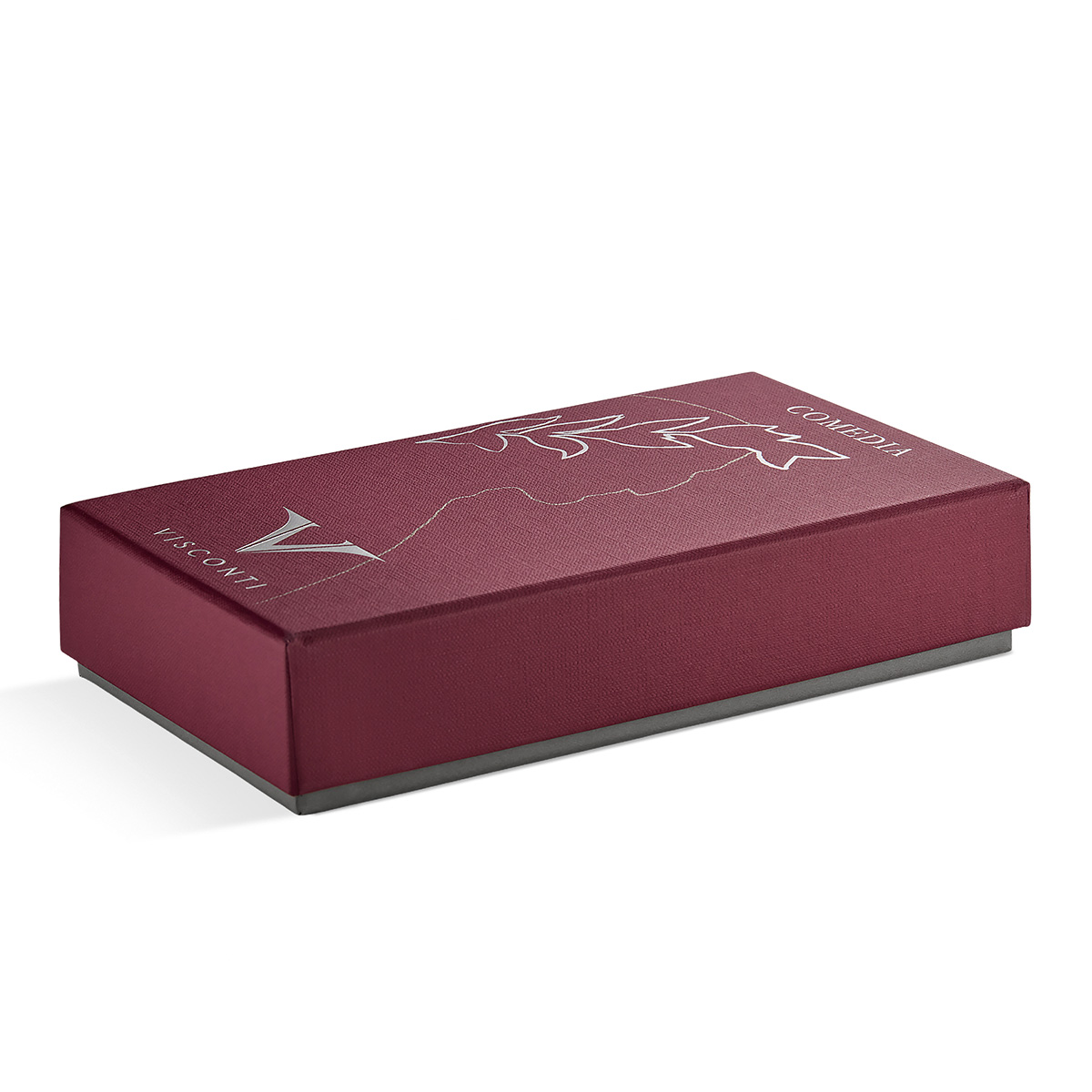 Στυλό διαρκείας της συλλογής Comedia Virgilio. Η σειρά Caronte αντιπροσωπεύει το αναπόφευκτο πέρασμα στο άγνωστο. Το πολυτελές αυτό στυλό είναι κατασκευασμένο από συμπαγή ρητίνη με ιβουάρ-κόκκινα νερά.