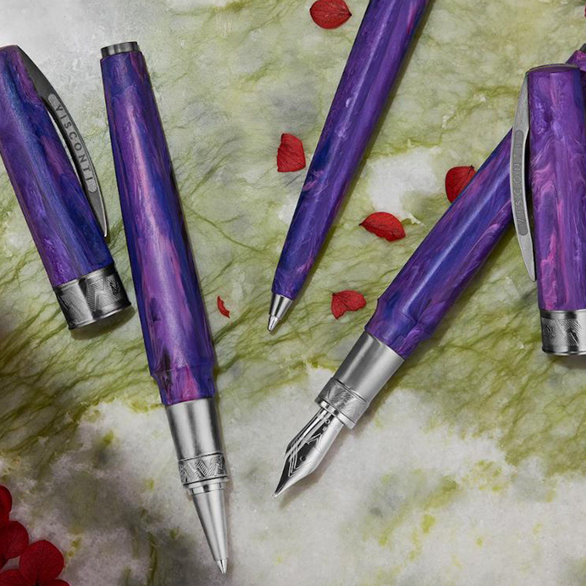 Στυλό roller της εταιρείας Visconti με αποχρώσεις μωβ. Αυτή η σειρά είναι κατασκευασμένη από πολυτελής ακρυλική ρητίνη και καπάκι με μαγνητικό κλείσιμο. Ιδανικό για άντρες και γυναίκες.