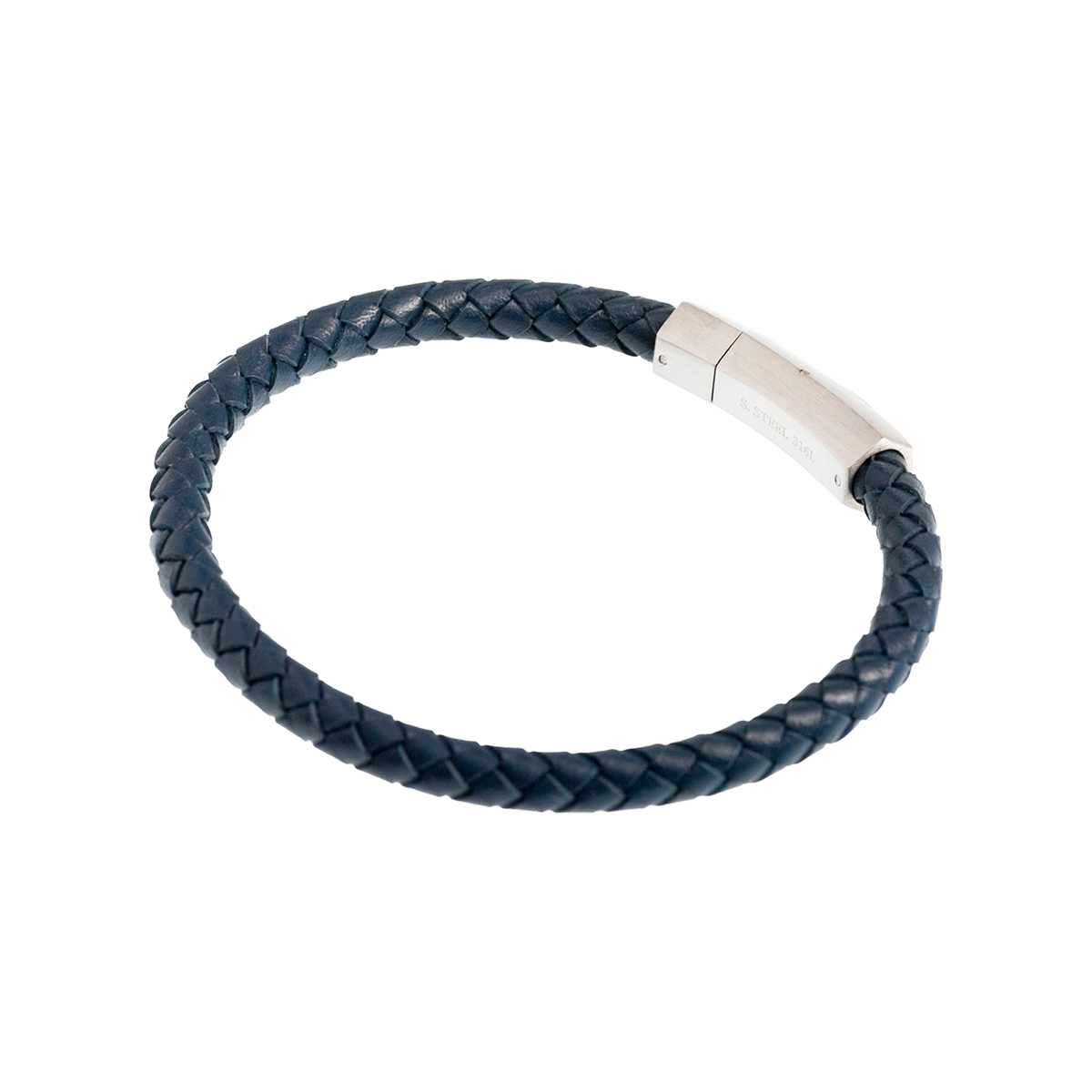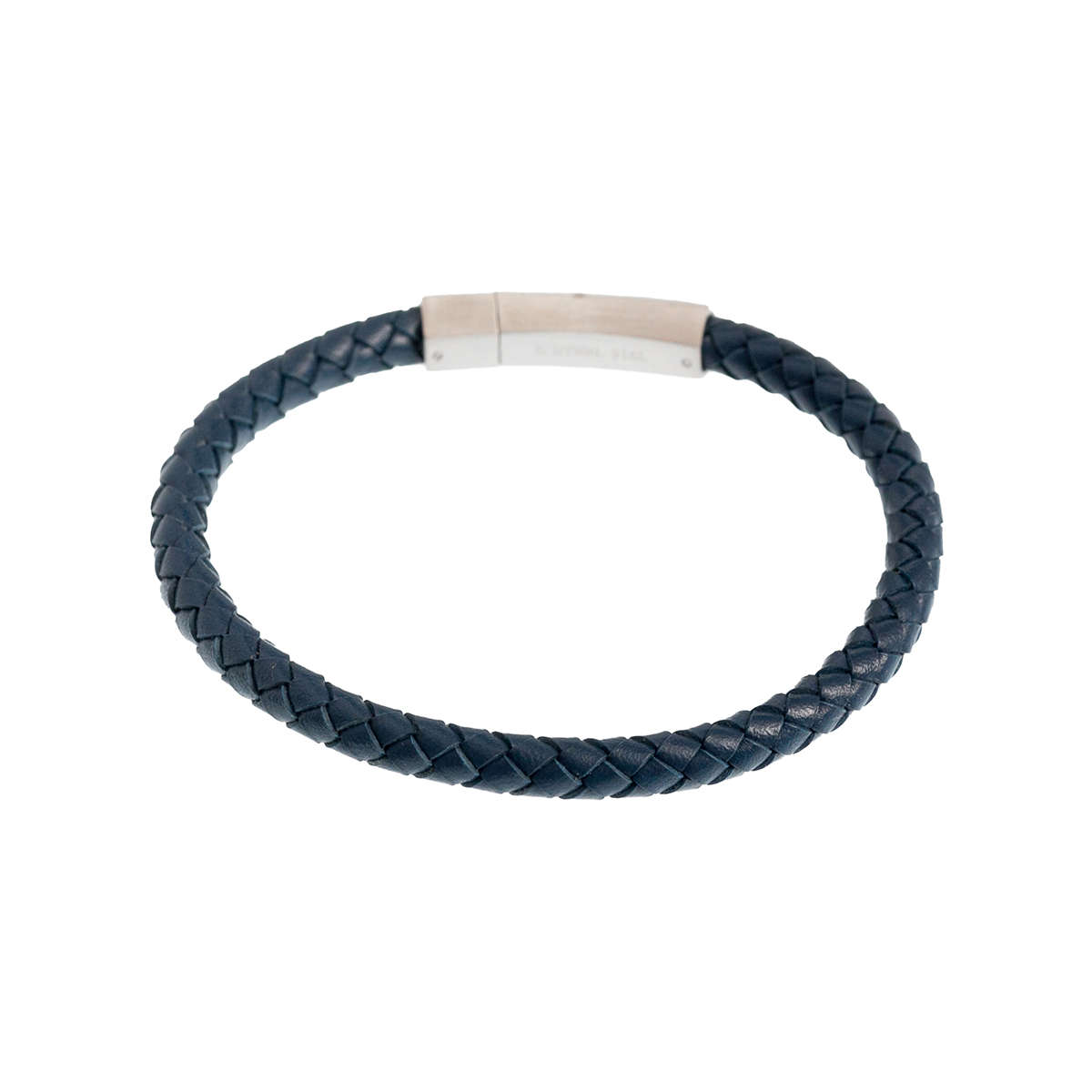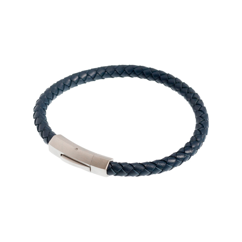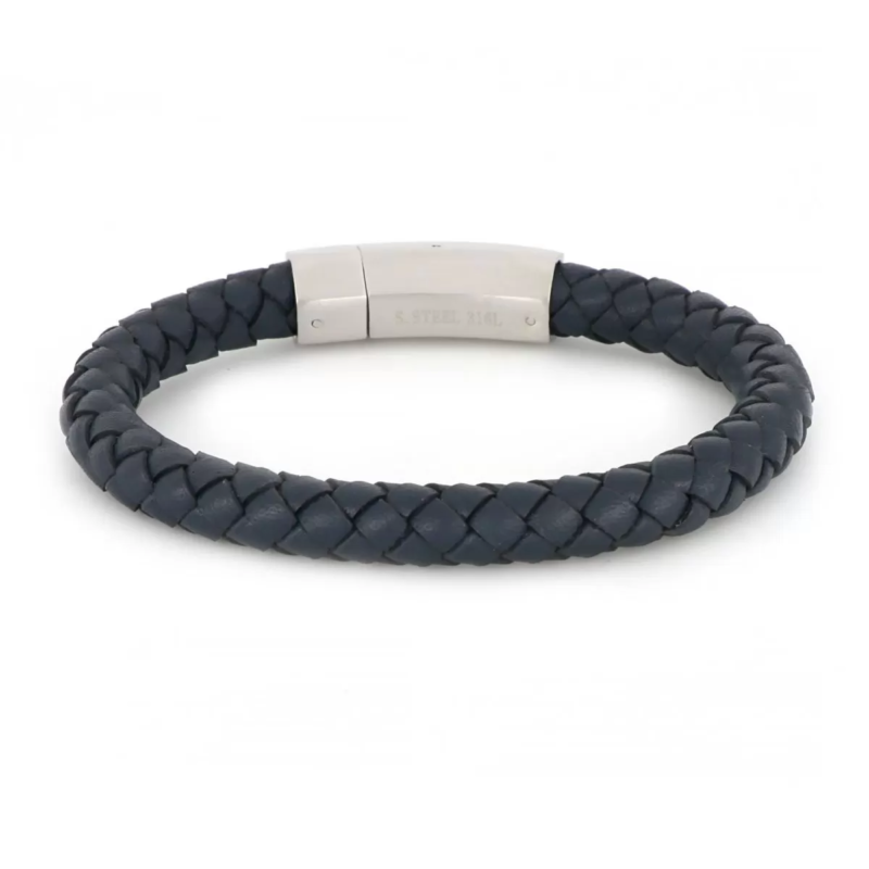 Ανδρικό βραχιόλι δερμάτινο μπλε πλεχτό και ατσάλινο κούμπωμα.