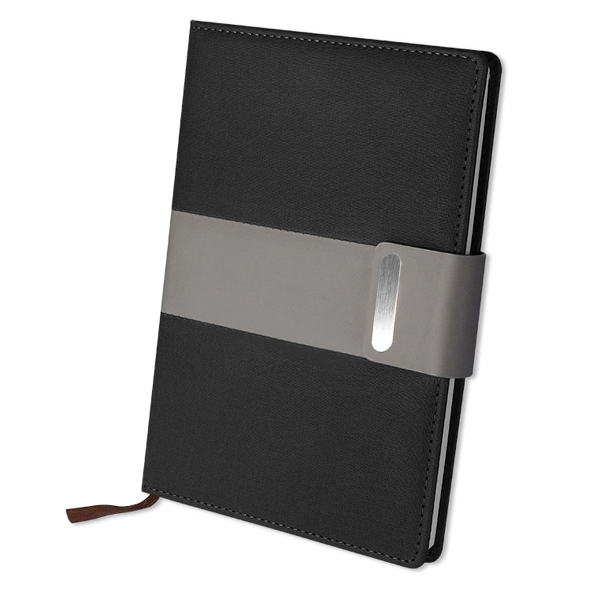 Σημειωματάριο VNC σε κομψό μαύρο χρώμα. Περιλαμβάνει γραμμωτές σελίδες, κορδέλα σελιδοδείκτη και μοντέρνο ελαστικό κλείσιμο με μεταλλική λεπτομέρεια. Η υφασμάτινη υφή εξωφύλλου και η ποιοτική βιβλιοδεσία προσδίδουν επαγγελματικό χαρακτήρα και ανθεκτικότητα στη χρήση.
