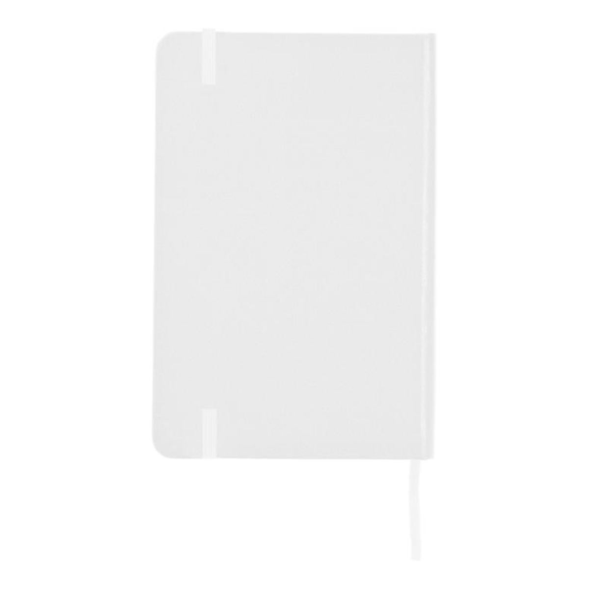 Σημειωματάριο σε χρώμα λευκό. Το σημειωματάριο διαθέτει φαρδύ λάστιχο για σταθερό κράτημα όπως και σελιδοδείκτη ιδίου χρώματος.