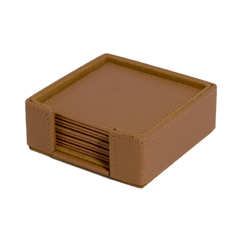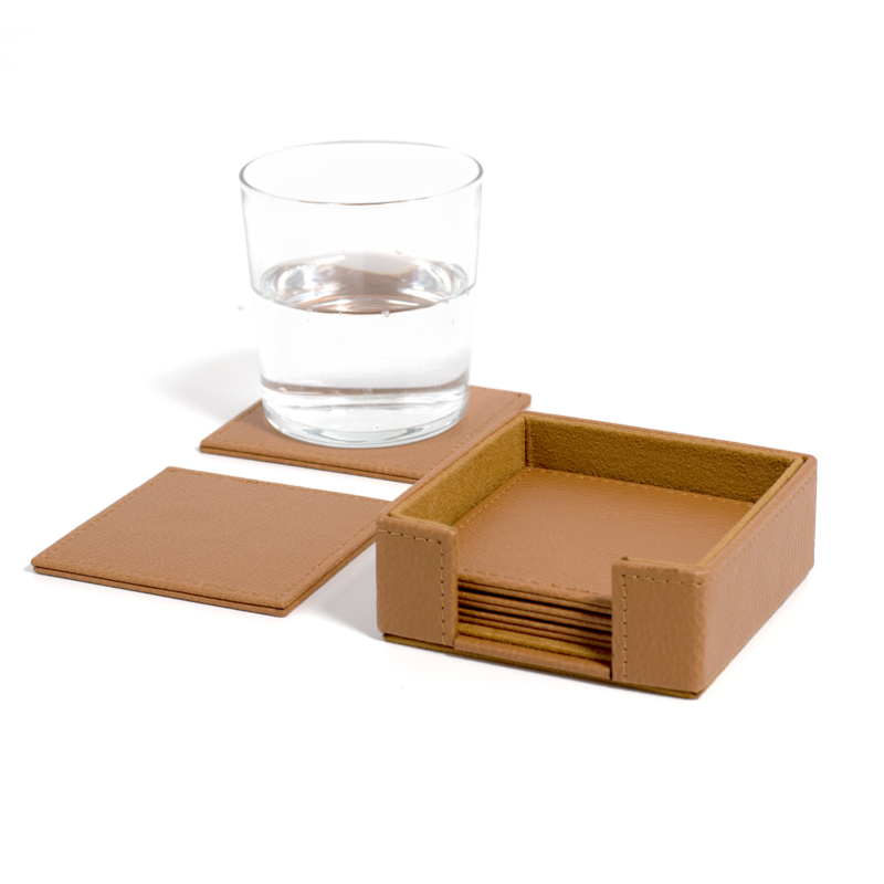 Δερμάτινο σετ σουβέρ γραφείου σε χρώμα κονιάκ. Περιέχει 5 σουβέρ και 1 βάση.