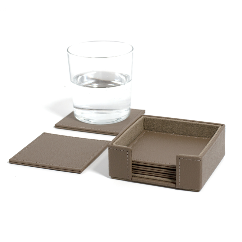 Δερμάτινο σετ σουβέρ γραφείου σε χρώμα μπεζ. Περιέχει 5 σουβέρ και 1 βάση.