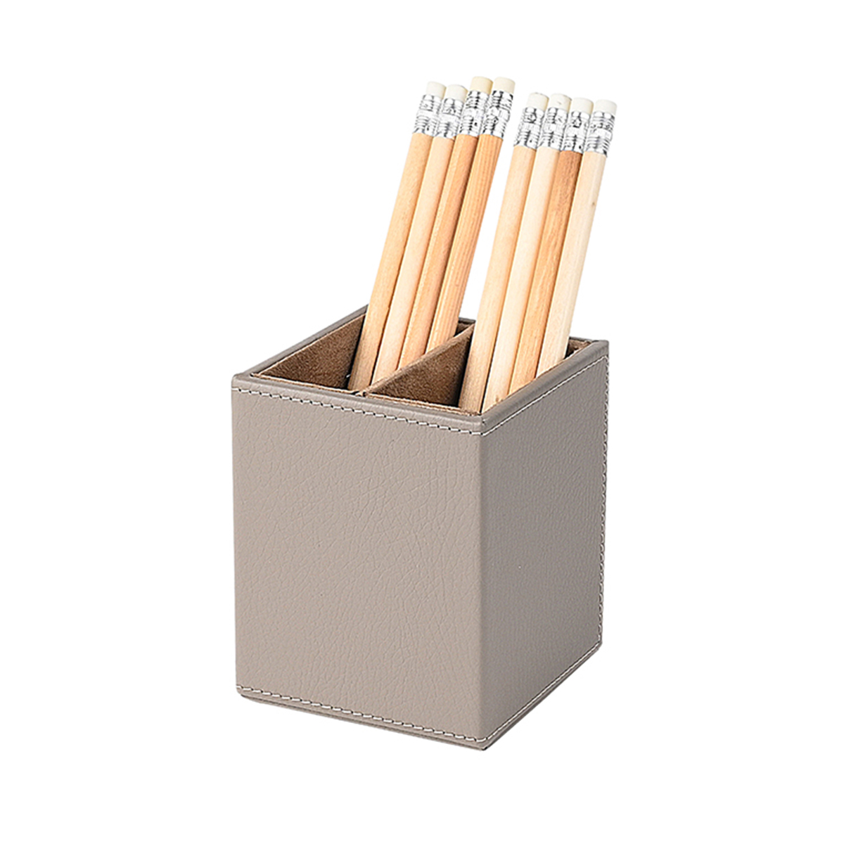Δερμάτινη μολυβοθήκη γραφείου σε χρώμα γκρι Διαστάσεις: ( 8.4 cm x 8.2 cm x 10 cm)