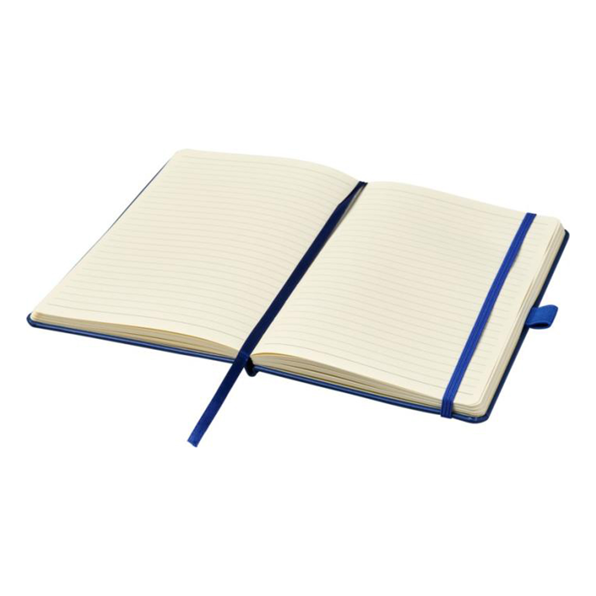 Σημειωματάριο σε χρώμα μπλε. Το σημειωματάριο διαθέτει φαρδύ λάστιχο για σταθερό κράτημα όπως και σελιδοδείκτη ιδίου χρώματος.